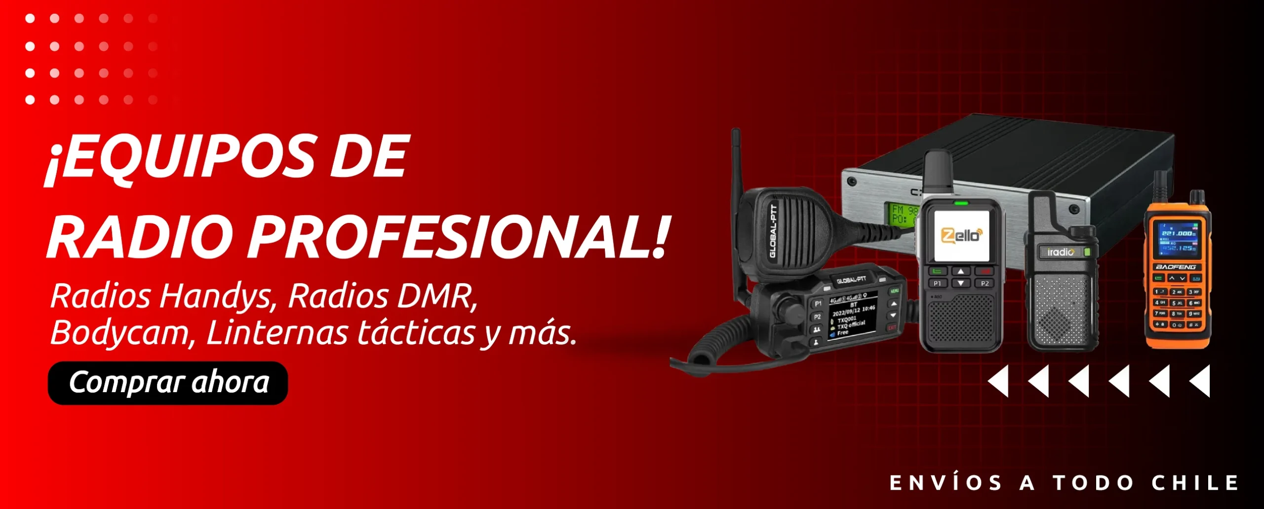 Trabajamos con marcas líderes en comunicación radial para garantizar rendimiento y confiabilidad.
