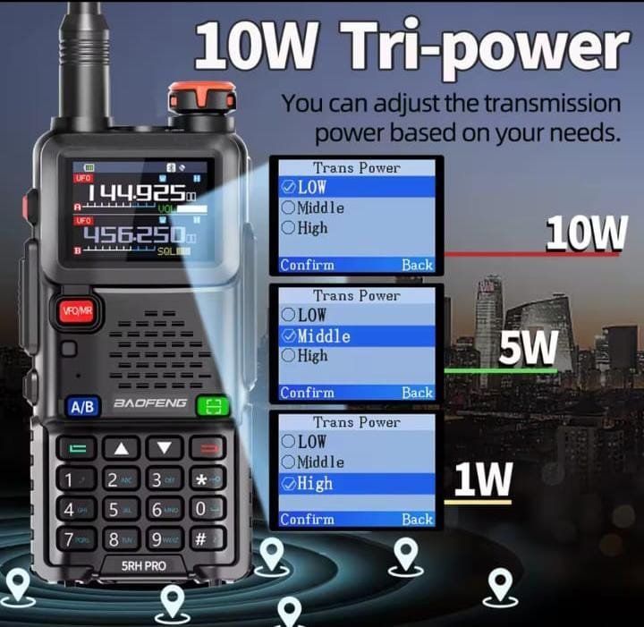 • 999 canales de memoria, potencia de salida máxima de hasta 10W