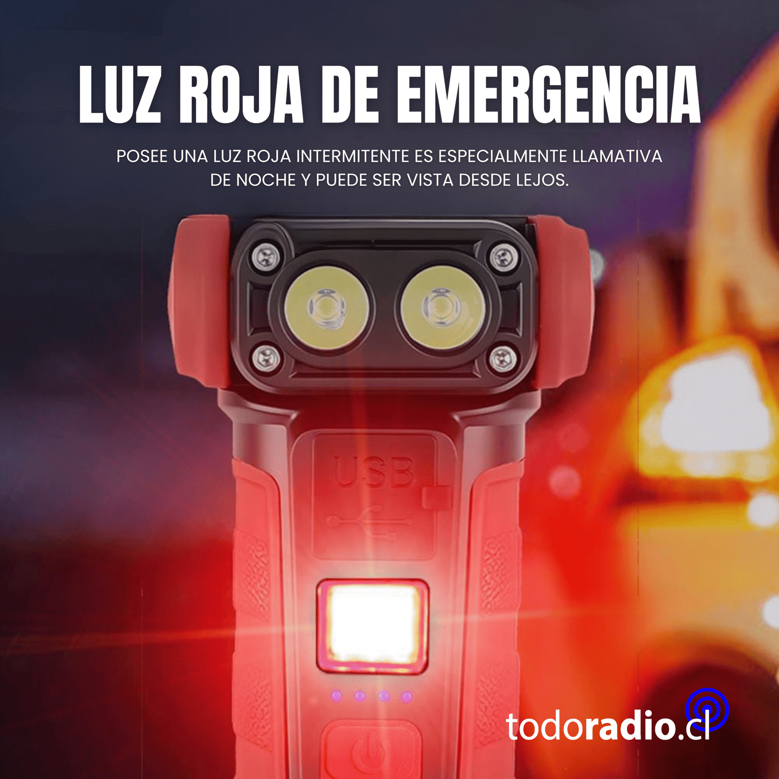 Luz relleno: luz blanca, luz roja fija y luz roja strobe.