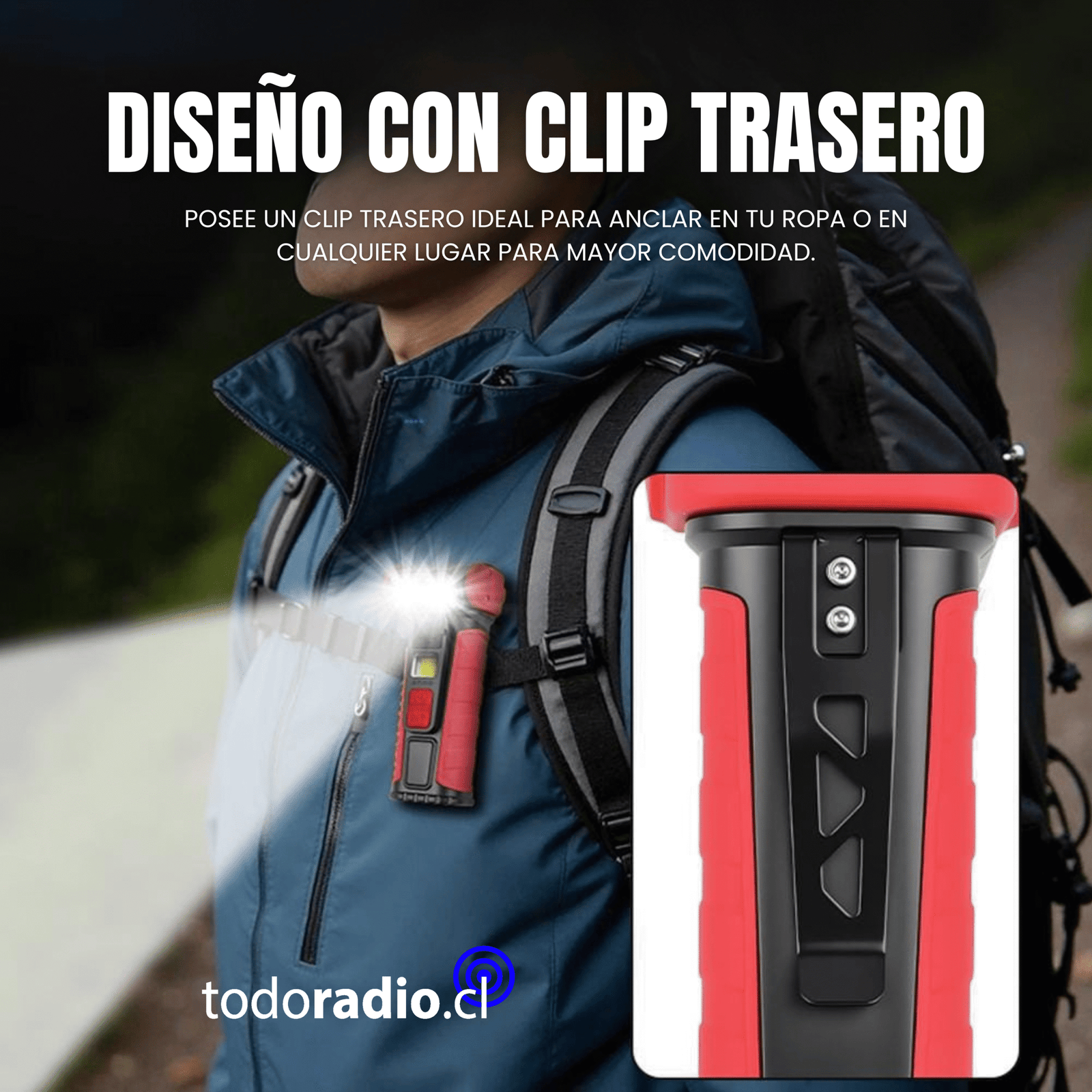 Su clip de sujeción permite fijar firmemente a ropa, herramientas u otros objetos, ya sea trabajos de mantenimiento o aventuras de campamento, y en uso de emergencias.