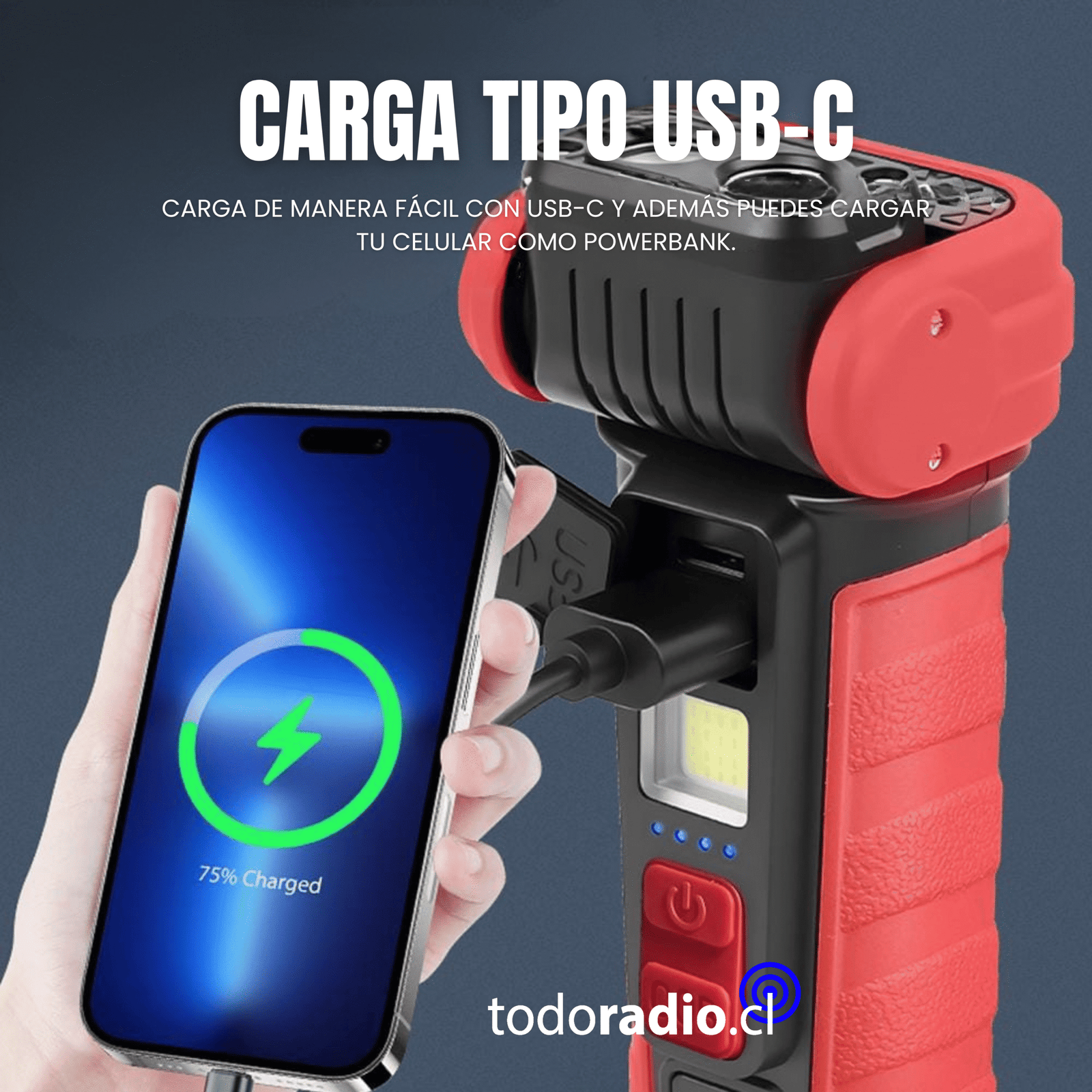 Excelente construcción, resistente, soporta salpicaduras de agua y permite ser utilizado como POWER BANK, para cargar celulares, dispositivos electrónicos, etc.