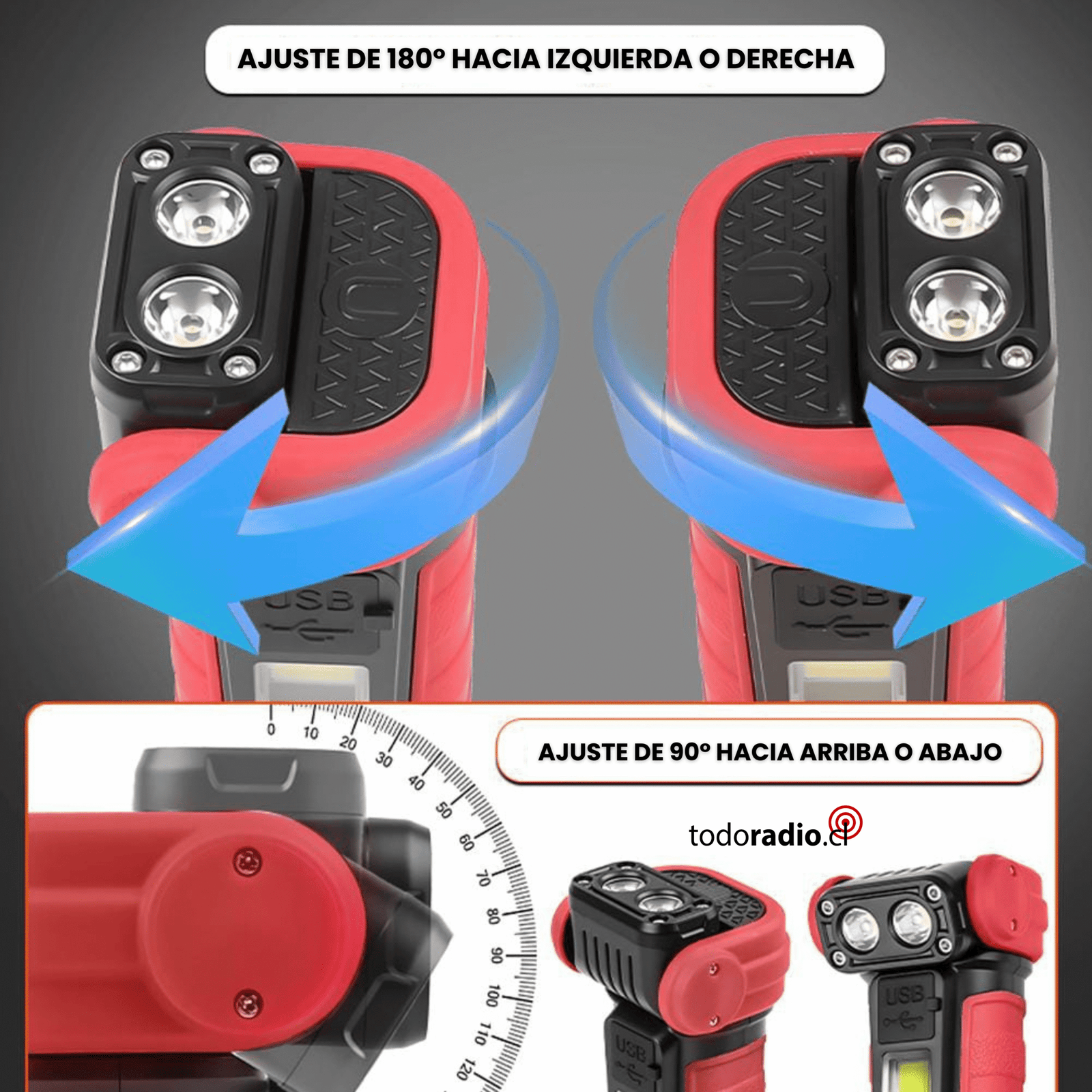 Esta práctica y potente linterna, de diseño mini portátil, permite que su cabezal se pueda girar para ajustar el ángulo de iluminación, lo que puede satisfacer sus diferentes necesidades de iluminación en cualquier momento y en cualquier lugar, y es una opción ideal para el trabajo y las actividades al aire libre.