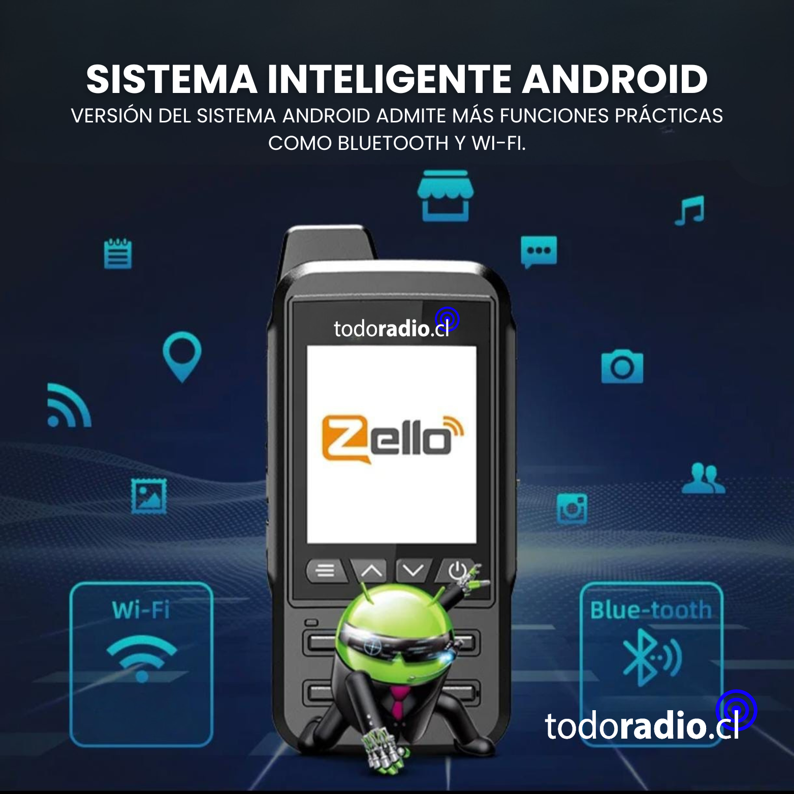 Ya instalada aplicación de ZELLO ( cuentas no incluídas).
