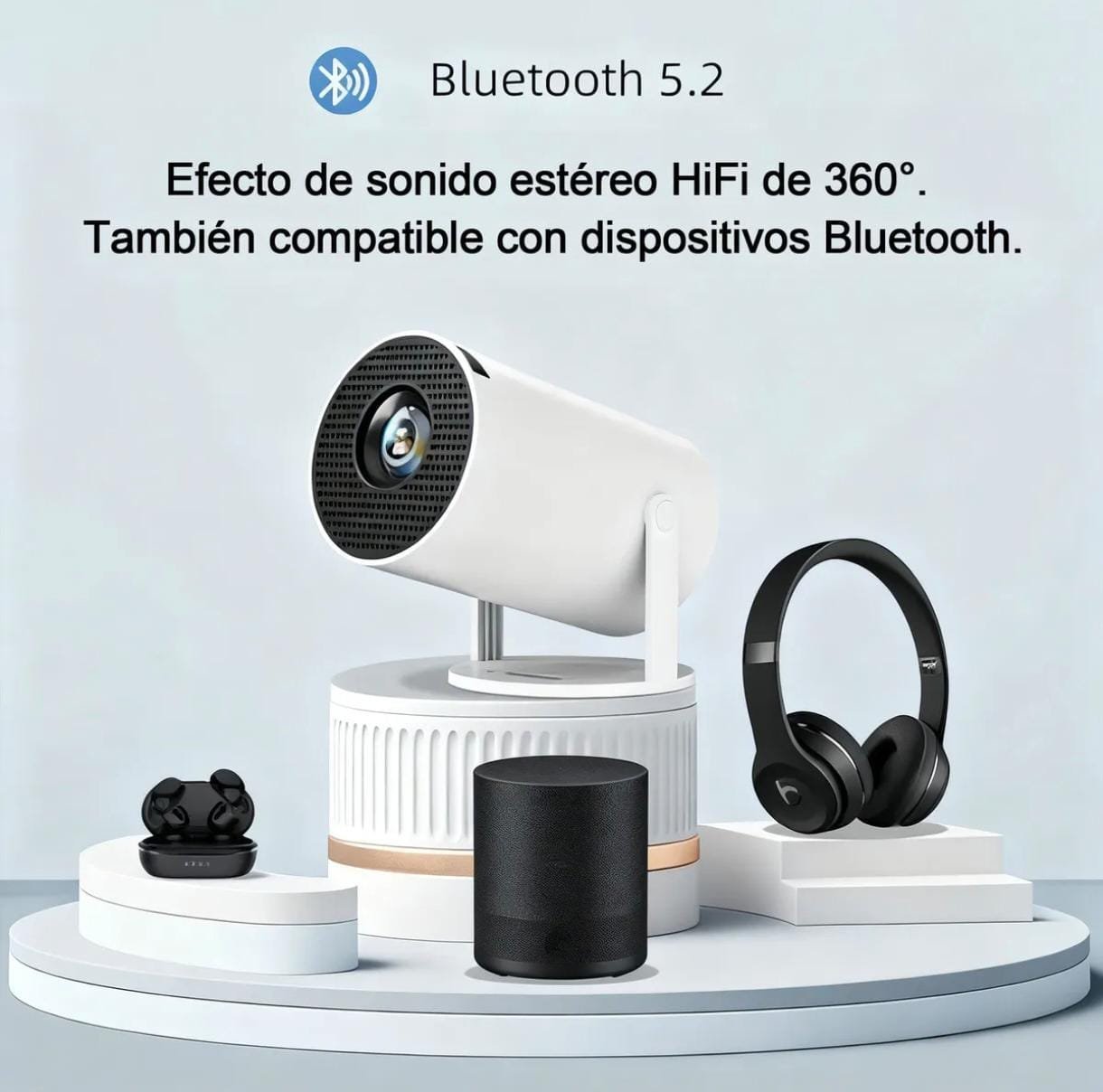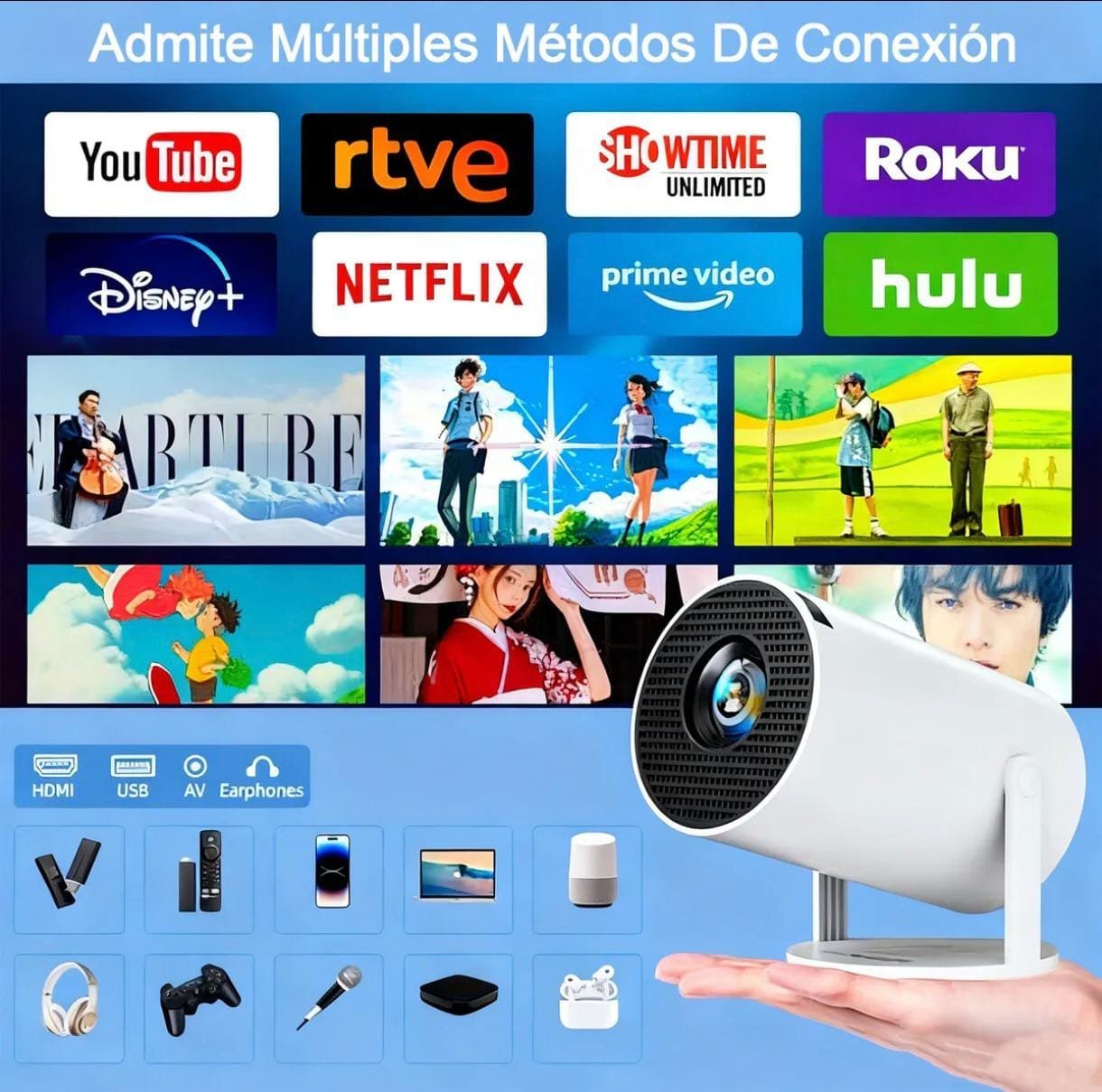 Con su diseño elegante y asa ergonómica, es fácil de transportar e instalar. El proyector es compatible con Bluetooth 5.4 para una conectividad perfecta y ofrece una impresionante resolución para una experiencia verdaderamente cinematográfica.